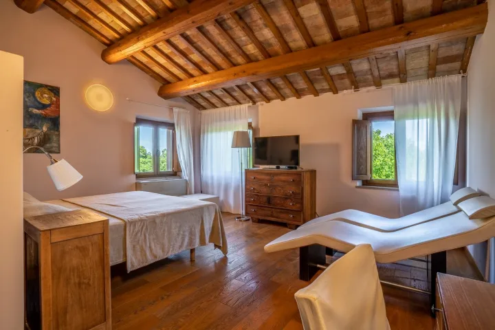 Ambiente confortevole dal design minimal-rustico, ideale per chi cerca un'oasi di relax immersa nella tranquillità delle colline marchigiane.
